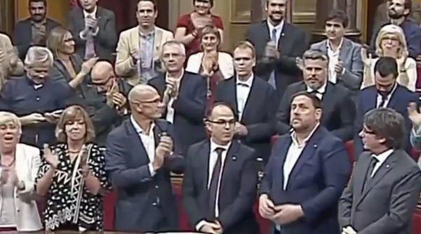 La madrugada del jueves 7 de septiembre, Carme Forcadell, presidenta del Parlament de Cataluña, realizó una convocatoria inesperada a la cámara para plantear la aprobación de la ley que regula la separación de Cataluña de España. Tras una reunión cargada de tensión, finalmente logró aprobarse la ley que permitirá convocar un referéndum el próximo 1 de octubre. Por su parte, Televisión Española se convirtió el miércoles por la noche en miembro del Tribunal Constitucional, catalogando este referéndum como "ilegal", tal y como pudo verse en el rótulo.