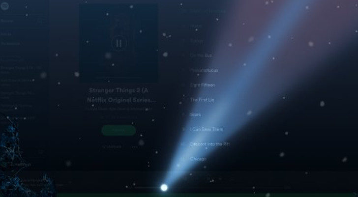 Con este filtro especial que pone la plataforma de música a nuestra disposición, podemos despedirnos de los colores corporativos de Spotify, y escuchar música con este nuevo reproductor, inspirado en 'Stranger Things'. El player se vuelve mucho más oscuro, con una luz que hace las veces de linterna y se va moviendo a través de la pantalla.