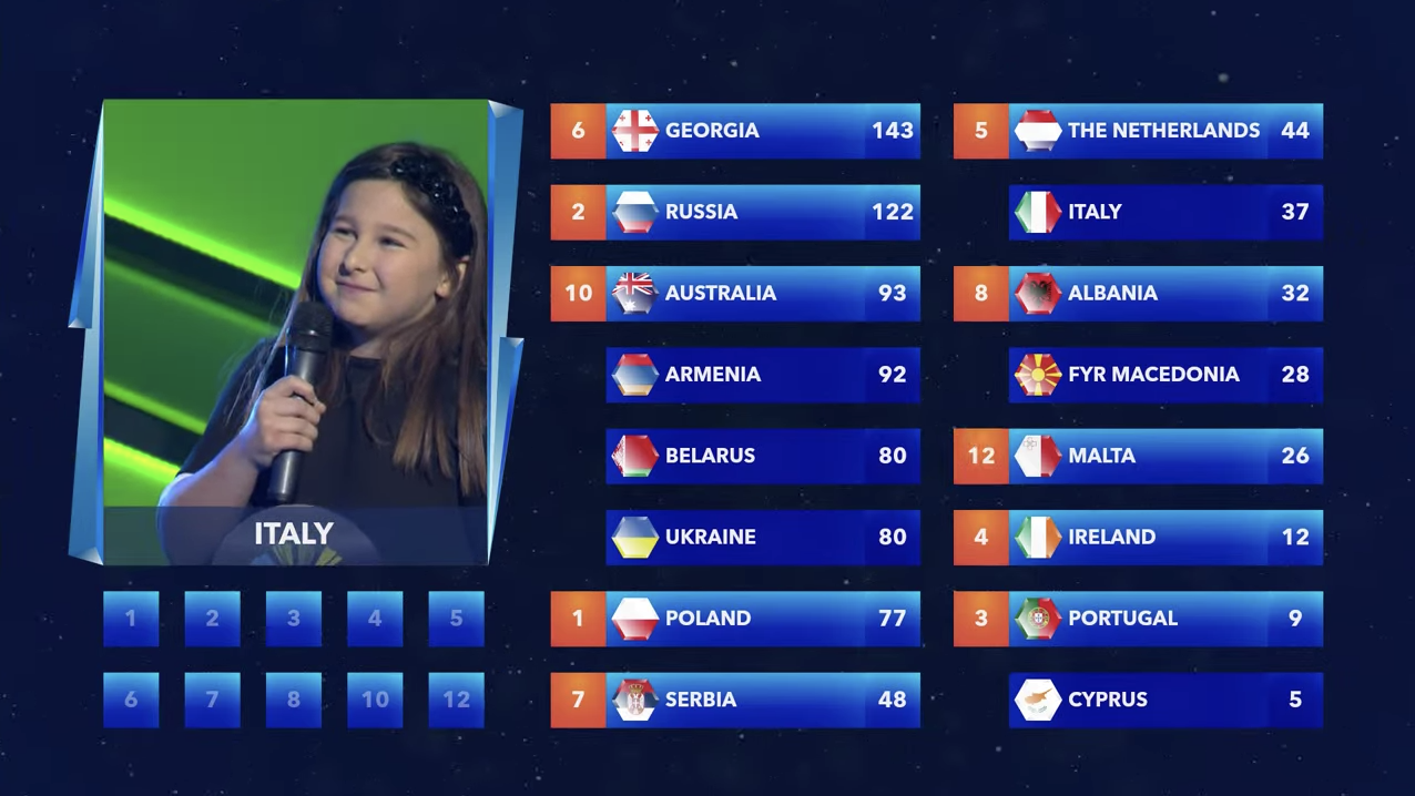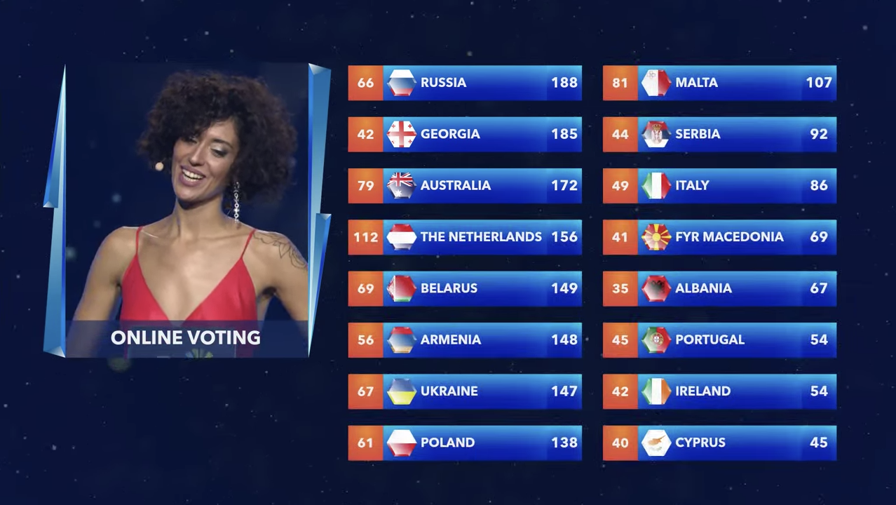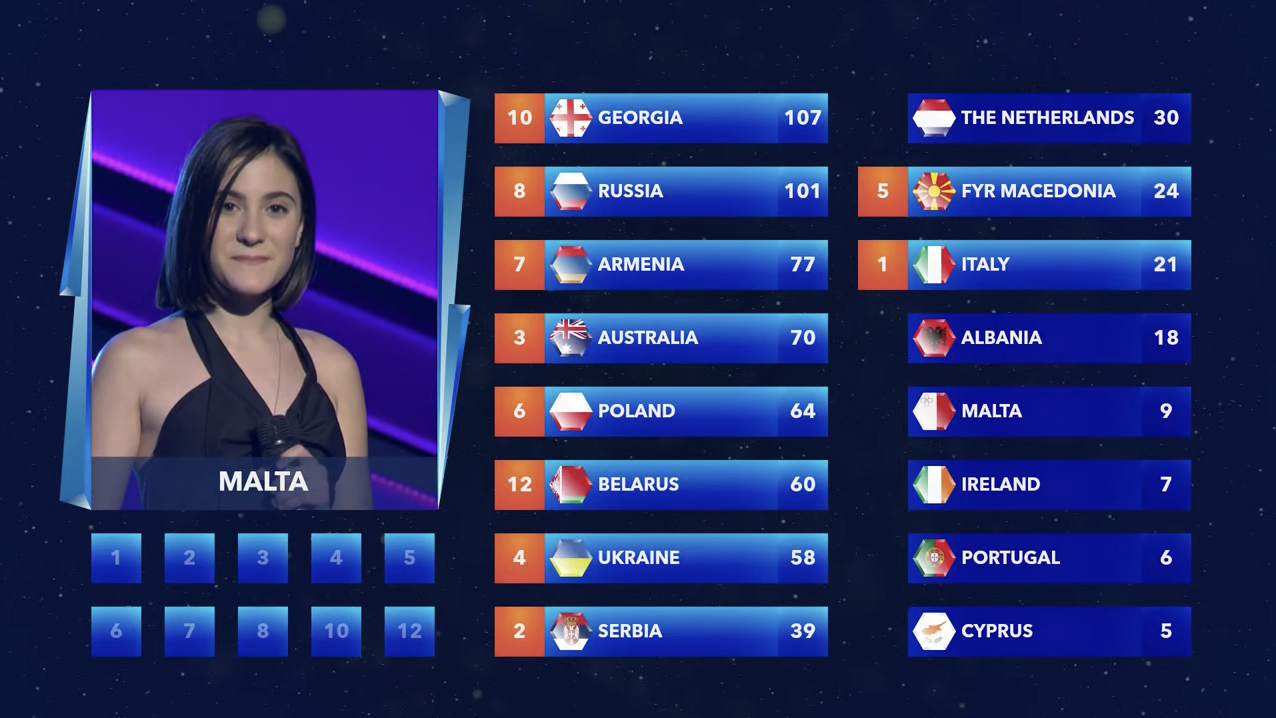 Los 12 puntos de Italia son para Malta, cerrando los votos del jurado