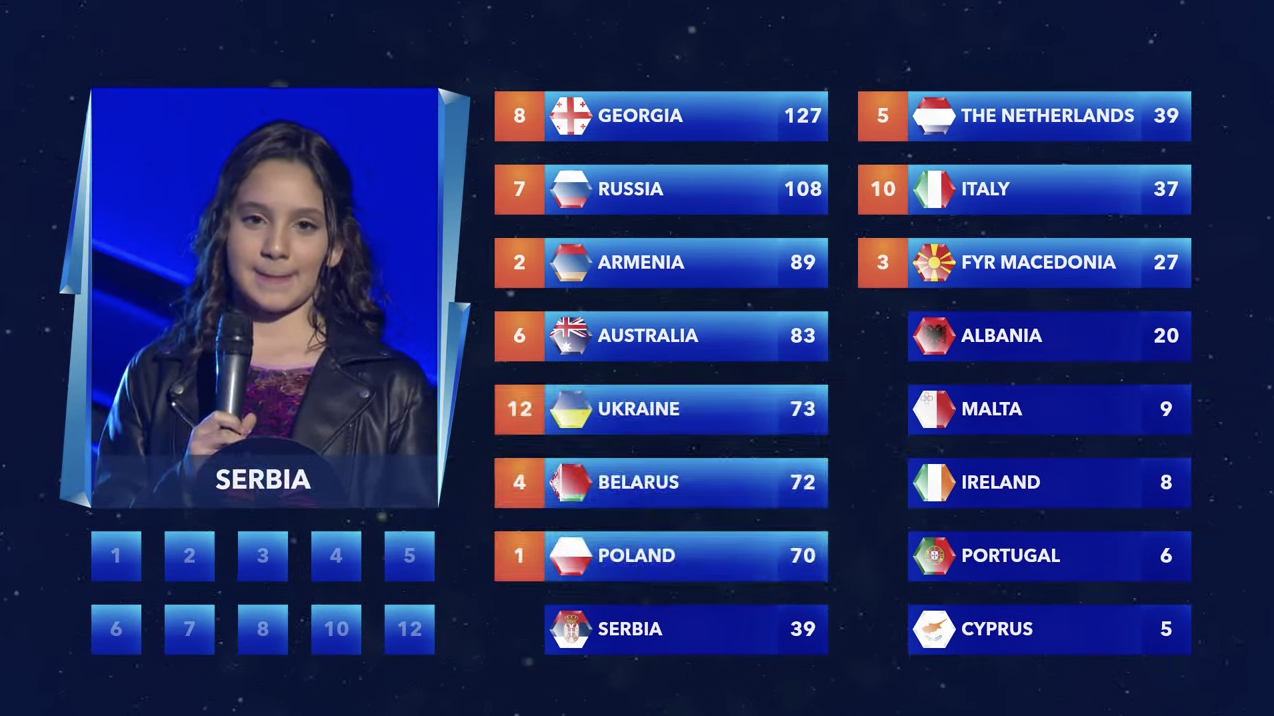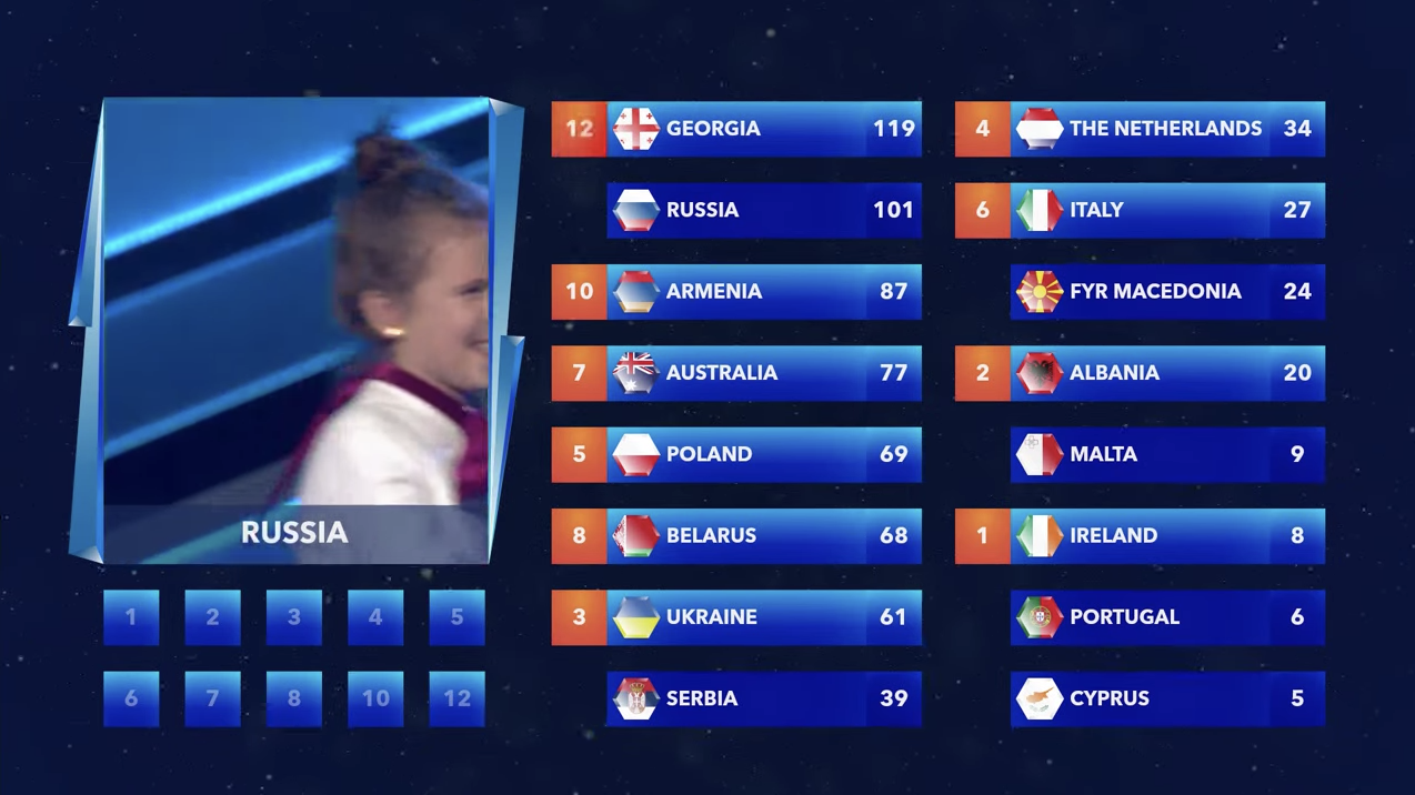 Rusia gana Eurovisión Junior 2017 aunque no es la opción preferida del televoto