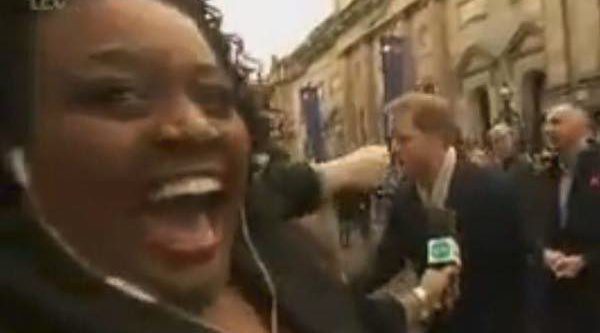 Hammond y su cámara se abrieron paso hasta la primera línea de uno de los laterales. Primero, la reportera centró sus esfuerzos en el príncipe Harry. Entre risas y gritos emocionados, le dijo: "Harry, ven a calentarte aquí a mi lado" y "Harry, estás en directo en 'This Morning", para intentar captar su atención. Cuando el príncipe Harry se acercó a su zona, sacó el micrófono mientras miraba a cámara con incredulidad y emoción, pero el príncipe le evitó y se fue a saludar a otras personas. "Me ha esquivado", exclamó Hammond entre risas.