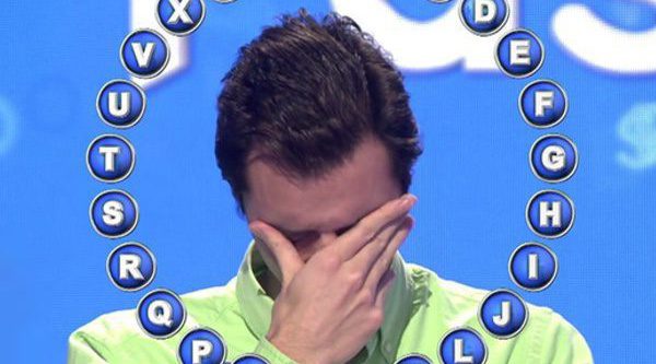 El chico fue contestando como podía a cada una de las definiciones propuestas. Con la cabeza inclinada hacia abajo y las manos delante, no dejó que pudiéramos verle la cara en la mayor parte del tiempo, pero sin duda era para evitar que le volviera a temblar la voz mientras concursaba, pero lo cierto es que el nudo en la garganta no se le fue en ningún momento.