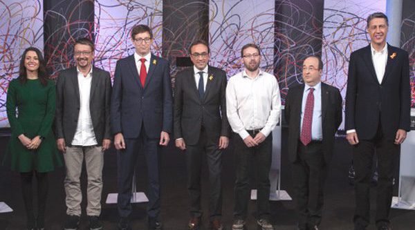 En dicho encuentro han participado no solo candidatos, sino también sus representantes: Inés Arrimadas (Ciudadanos); Carles Mundó (ERC), Josep Rull (Junts per Catalunya), Miquel Iceta (PSC), Xavier Domènech (Catalunya en Comú), Vidal Aragonés (CUP) y Xavier García Albiol (PP). Cada uno ha dispuesto de un minuto de arranque, que inició Aragonés. El número tres de la CUP incidió en la necesidad de "construir una República catalana, que es el mandato desde el 1-O". Una declaración que invitó al resto de contendientes a utilizar su minuto para lanzar los primeros reproches, defender la unidad de España, reafirmar a su propio partido como única opción o, incluso, como en el caso de Albiol, a alabar la actuación del Gobierno y la aplicación del 155. Tan solo Iceta y Domènech arrancaron sus intervenciones aludiendo a los posibles pactos que puedan surgir tras las elecciones.