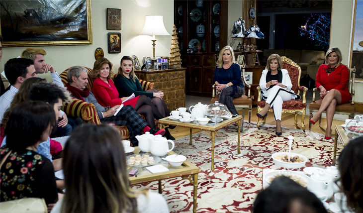 Y allí nos plantamos, en la calle Camino Real, de Las Rozas de Madrid (escribo la dirección porque ella misma lo ha dicho públicamente en más de una ocasión) y nos esperaba, para abrirnos la puerta, la cuarta estrella del programa de 'Las Campos': María, la asistenta de la familia. Muy educada (y algo cortada ante las cámaras y los periodistas), nos indicó dónde podíamos dejar los abrigos y nos guió hasta el salón. Bueno, mejor dicho, uno de los salones. Nos acomodamos y no podíamos dejar de mirar cualquier detalle. Parecía que estábamos en una exposición de arte rococó o un decorado de una serie del Canal Historia y eso que ya lo habíamos visto en la tele y de hecho nos advirtieron: "Es difícil entrar en esa casa y que no se os vayan los ojos". Lo que estaba claro es que allí estábamos y era real.