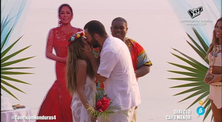 Pues bien, tan solo tres días después ya se ha celebrado la boda. Al menos por el rito garífuna. La organización de 'Supervivientes' ha organizado este domingo, durante la emisión de 'Conexión Honduras', una boda exprés en una de las playas de los Cayos Cochinos. Una boda preciosa, con todos los concursantes como invitados y con la presencia de un divertido corpóreo de Isabel Pantoja a tamaño real.