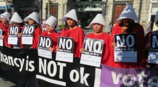 Pero ahora República de Irlanda está usando su indumentaria, a través del grupo ROSA, para un importante referéndum. En la noche del 23 de mayo acabó el periodo de votación para decidir si se deroga la ley que prohibe a las mujeres a abortar dentro de sus fronteras. Una campaña a favor de la derogación ha informado de que existen más de 3.000 ciudadanas irlandesas que deben salir del país para poder abortar y otras se automedican pastilla para interrumpir el embarazo, sin tener supervisión médica.