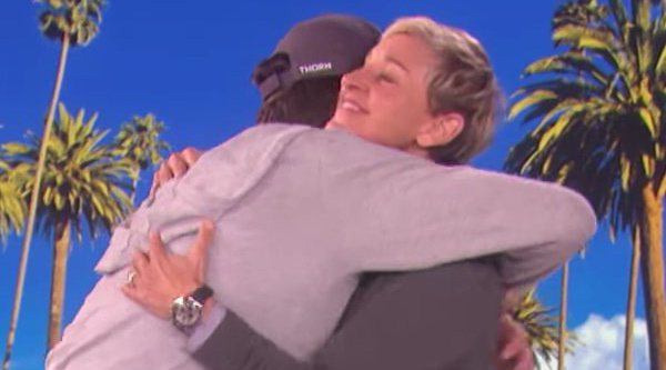 El actor se mostró agradecido por la labor que tanto ella, como su mujer Portia de Rossi llevaban a cabo, por ello no dudó en felicitarla en directo. Lo que posiblemente Ellen nunca hubiese imaginado es que en ese instante el actor ofreció una gran cantidad de dinero para que fuese donada de forma inmediata a la asociación, provocando que a la presentadora se le saltaran las lágrimas: "Siempre lo he dicho, el ser amado es el mejor regalo que alguien podría haberme dado, así que os amo".