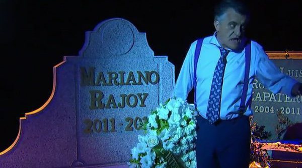 El Gran Wyoming acudía hasta la tumba de Mariano Rajoy con una corona de flores para despedirse de él: "Mira lo que te dejo, «'El Intermedio' no te olvida'». Bueno, ni los pensionistas, ni los científicos, ni los médicos, ni los fabricantes de Farmatin, pero es que no cabían todos en la dedicatoria".