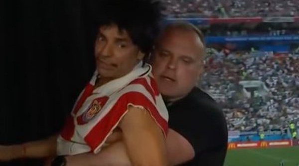 El Mundial de Rusia no ha hecho más que empezar y ya está dando de que hablar. El primer día Robbie Williams, el encargado del conducir el espectáculo de inauguración de la cita mundialista, le dedicó ni más ni menos que una peineta a las cámaras de televisión. Días después ha sido la aparición sorpresa de un humorista ante las cámaras de Telemundo la que está atrayendo la atención de todo el mundo.