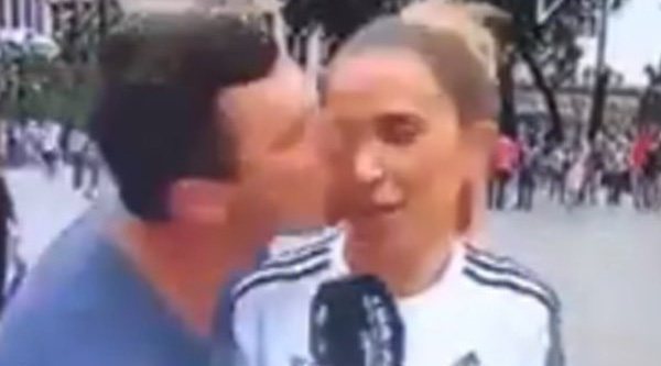 La periodista María Gómez se encontraba informando a sus compañeros sobre el próximo partido entre Rusia y España hasta que, en mitad de la conexión, ha aparecido un hombre y le ha dado un beso. Tras esta triste situación que ha tenido que soportar, la reportera ha querido pronunciarse a través de su cuenta oficial de Twitter denunciando la actitud continuada de estos hombres con las trabajadoras.