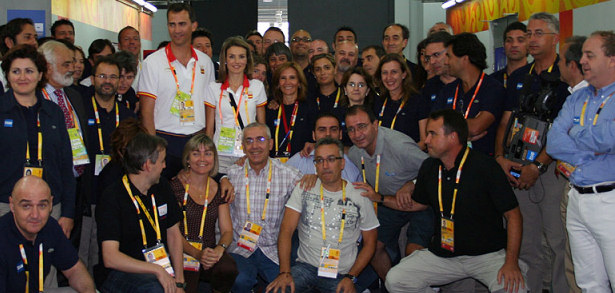 Los Príncipes de Asturias han sido recibidos en el IBC de estos Juegos por el Presidente de la Corporación RTVE, Luis Fernández, y por el director de TVE, Javier Pons. Don Felipe y Doña Leticia se han mostrado muy interesados en conocer cómo se harán llegar los juegos por televisión a todos los españoles.