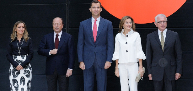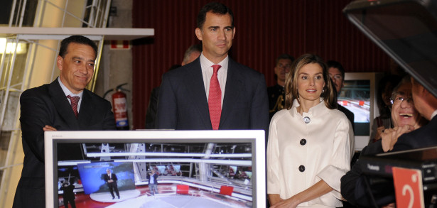 Don Felipe y Doña Letizia fueron recibidos por el consejero delegado de Sogecable, Javier Díez de Polanco; el director general de Cuatro, Daniel Gavela, y la directora de Contenidos de la cadena, Elena Sánchez Ramos.