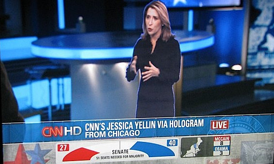Así, la cadena desplazó a un buen número de dotaciones técnicas hasta Chicago para hacer que el holograma de la reportera Jessica Yelin apareciera en el plató de la CNN, y poder mantener así una conversación "virtual" con el presentador del espacio, Wolf Blitzer.