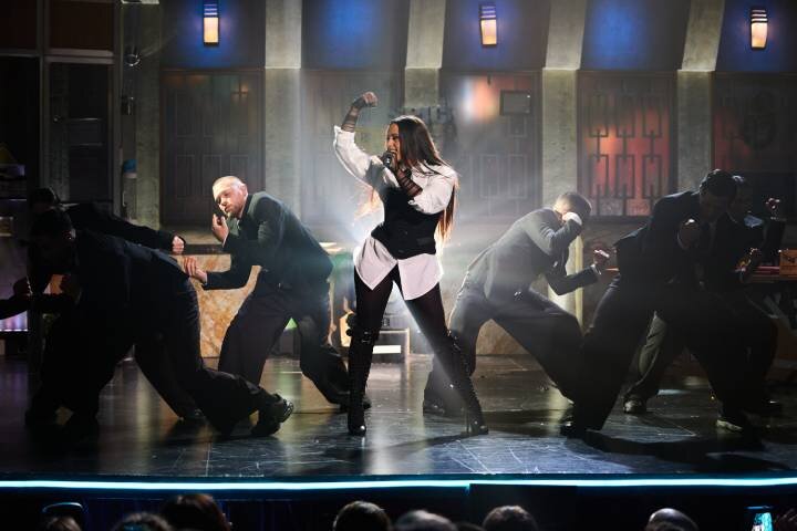 Al igual que en Eurovisión y en sus muchas actuaciones, Chanel tampoco renunció a las piruetas y al baile, arropada por varios compañeros, con los que se ganó el aplauso tanto del público del teatro como de los espectadores que lo compartieron y comentaron a través de las redes sociales, donde no tardó en hacerse viral. "No me esperaba semejante descanso de la Super Bowl", alabó Broncano, al dar la bienvenida a su invitada. "Por cierto, quiero pedir un aplauso para todo el equipo del programa, porque ha sido increíble trabajar con ellos y a mi equipo personal, también", destacó entonces Chanel.