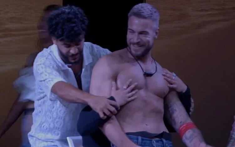 La actuación del grupo rosa concluía con Porta sentada en el centro del escenario mientras Alex le dedicaba un atrevido striptease. Como colofón, el canario se atrevió a quitarse la ropa interior, oculto por una toalla que sostenía su hermana y Makoke, tras lo cual Porta se aproximó a él para compartir un apasionado beso. Además, la cosa no quedó ahí, sino que la catalana cogió los calzoncillos de Alex para arrojarlos al público, momento en el que terminaron a los pies de una "traumatizada" Luján Argüelles, en medio de los aplausos y risas de los presentes. "Aunque esto sea un juego, una prueba que queremos ganar, aquí se demuestra que en un programa de televisión, también hay cosas reales", aclaró Porta, tras concluir el número.