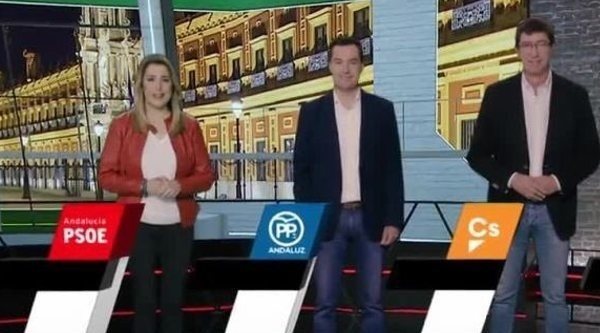En la cadena pública además utilizó la realidad aumentada para ir mostrando en directo cómo iban evolucionando los colores del hemiciclo andaluz, unas proyecciones que se realizaron en el centro del plató de Madrid mientras que frente al Parlamento andaluz donde estaban Carlos Franganillo y Ana Blanco se proyectaron los resultados y se iban lanzando también diferentes cuestiones que iban a ser debatidas posteriormente en el plató con los colaboradores.