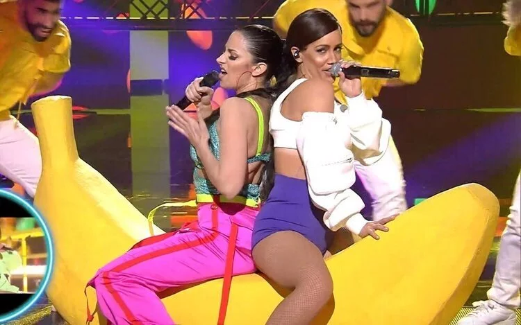 El tema que defendieron juntas fue "Banana" , y en los ensayos ya comentó María que Alba "es más picantita que yo". Arnau Arnau Vilà ya les avisaba que tenían que irse al "guarrerismo y a la provocación", algo similar a lo que les comentaba Miryam Benedited en su clase, que tenían que controlar "cómo me siento en esta banana y cómo me contorneo". La concursantes, entre risas, comentó lo siguiente antes de meterse en el clonador con Alba: "La he liado y la he puesto encima de una banana".