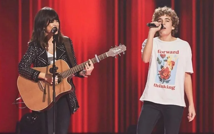 Vanesa Martín junto a un concursante de 'La Voz Kids'