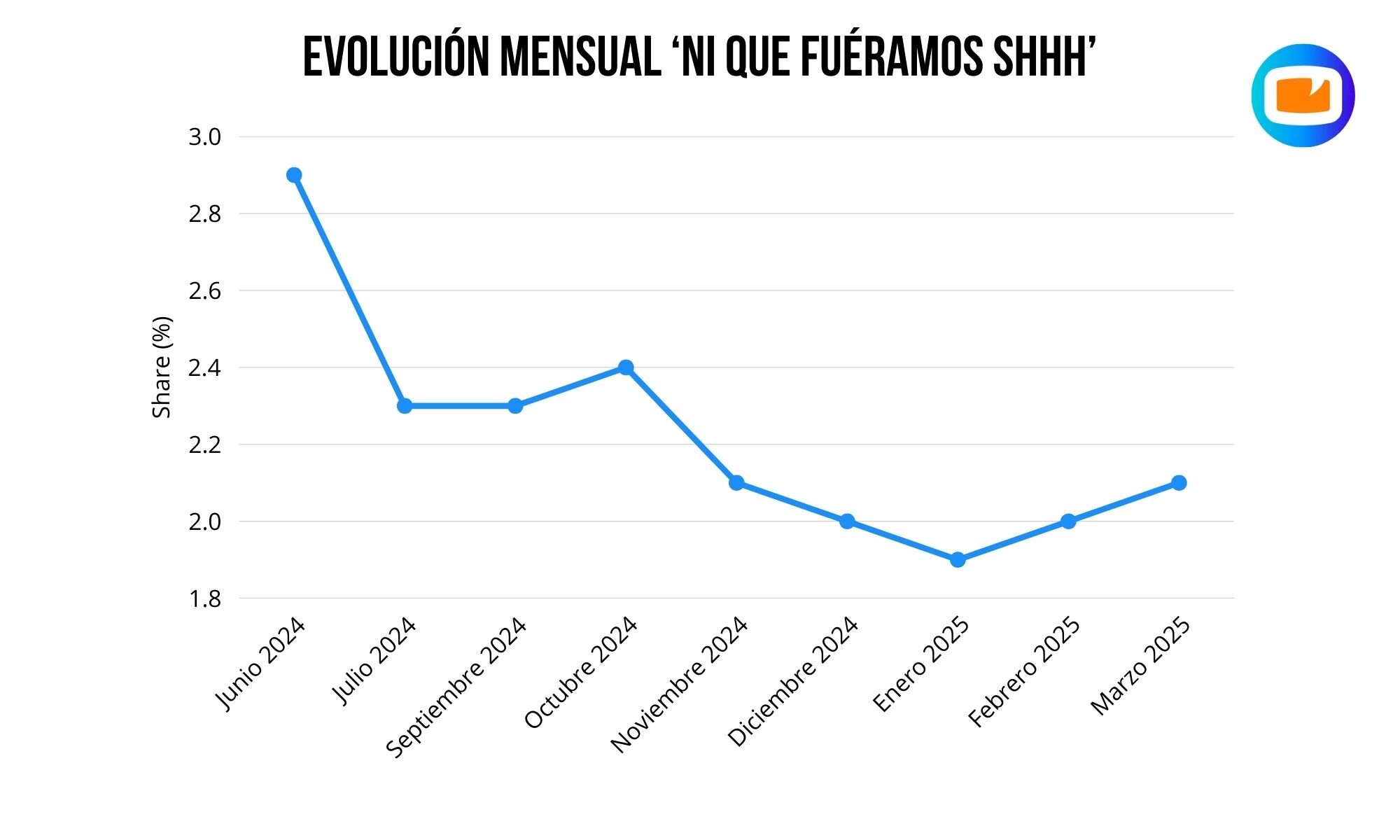 En octubre de 2024, el programa mejoró +0,1 puntos y promedió un 2,4%, pero desde noviembre hasta enero de 2025 el share fue disminuyendo progresivamente, llegando al 1,9% en el primer mes de 2025, anotando así su mínimo mensual. En febrero, 'Ni que fuéramos Shhh' recuperó levemente y regresó al 2% y en marzo, su último mes, el programa creció también una décima, marcando un 2,1%.
