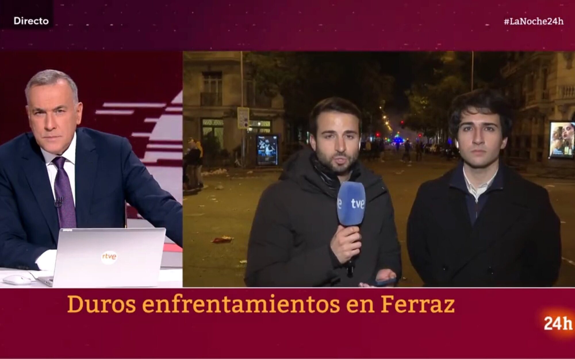 Más de medio millón de espectadores siguieron la actualidad de las protestas frente a la sede del PSOE en la madrileña calle Ferraz a través de 'La noche en 24 horas'. De esta manera, se convierte en el espacio líder, por encima de la película "Canadian Pacific" en Trece y una entrega de 'FBI'. Además, esta serie de Energy cuenta con otros tres capítulos en el ranking que completan tres series de Nova y un episodio de 'La que se avecina'.