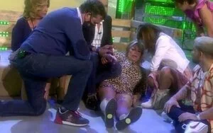 La periodista ya advertía que esa prueba podría resultar peligrosa, a lo que sus compañeros hacían caso omiso. Tan solo dos segundos después, la conocida como "princesa del pueblo" caía al suelo y gritaba con dolor que se había hecho daño en el tobillo. Los presentadores y los colaboradores corrían a socorrerla, pero ella continuaba exclamando: "¡El tobillo! ¡Me he roto el tobillo!".