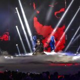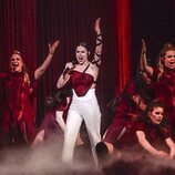 "Hemos querido expresar la emoción a través de la voz y que los bailarines la elevaran a través del movimiento", compartió por su parte Otero. Para Vicco, la puesta en escena era producto de "un trabajo muy largo", con el que "quisimos contar cómo preparamos una fiesta y detrás hay una narrativa que cuenta cómo empecé en la música". "Quería crear un espacio con cierta magia sobre la historia, el recuerdo, llevármelo que estuviera conectado con mis raíces", explicó Karmento, cuyo deseo había sido "que mucha gente pudiera conectar con ese refugio". Asimismo, la manchega descartó cambios de cara a la cita del sábado, puesto que "estoy en la final, es maravilloso, y ahora viene un punto de disfrute".