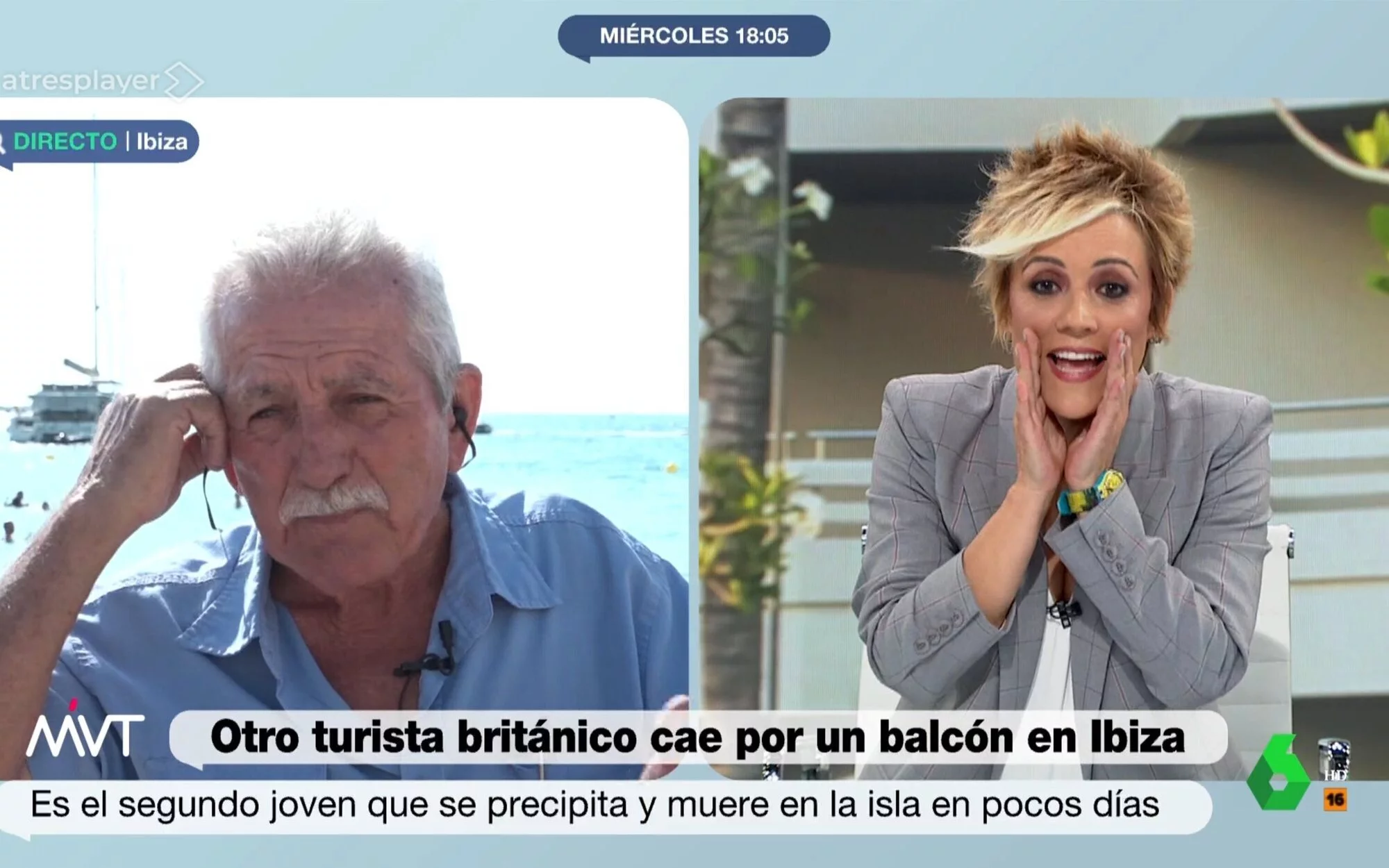 "Perdona un momento, te oigo yo muy débil. El sonido lo recibo débil", comenzaba diciendo el Campillo, quien al decir que "no bien del todo, pero bien" cogió carrerilla para comentar cómo estaba la situación en Ibiza. Entre otras cosas contaba que ya se habían acostumbrado a que ocurrieran estas cosas y que creen que el motivo es que hay mucho ocio en la isla relacionado con el alcohol y las drogas: "Están en el menú de todos los días", apunta.