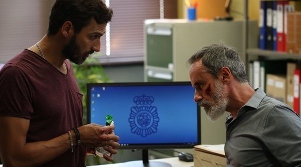 Pero retomando la idea de que hay ciertos aspectos que sacan de la historia, nos vamos a centrar en dos puntos: el grafismo y ciertas chapuzas de guion (y pasaremos por alto la abusiva música de tensión que llega a saturar). En cuanto al grafismo, en la mesa donde Yago es entrevistado por la joven periodista, aparece como un holograma en el que pasa los fotogramas que te llevan a la época en la que se va a centrar el flashback. No. No es una serie de ciencia ficción y este recurso no era necesario y menos todavía cuando luego está repleto de rótulos.