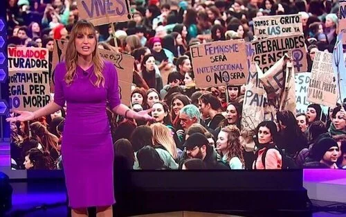 Sabatés también ha reivindicado el movimiento como "una casa con las puertas abiertas, capaz de dar cobijo a jóvenes y veteranas, a las que viven en grandes ciudades o las que provienen del mundo rural", ha asegurado, incluyendo también a aquellas mujeres que "proceden de lugares donde son tratadas casi como mercancía". Aludiendo directamente a Vox con un fotografía de Santiago Abascal de fondo, la periodista ha asegurado que, además de "la discriminación, la brecha salarial, el techo de cristal, la violencia sexual o los asesinatos machistas", un gran problema del movimiento es una "ideología reaccionaria que aprovecha las discrepancias en el seno del feminismo para entorpecer cualquier avance".