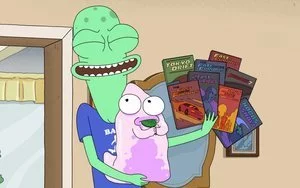 Al fin y al cabo, por extraño que pueda parecer por las brutales dosis de violencia, tanto verbal como física, que se dedican sus protagonistas, 'Solar Opposites' es una comedia familiar. Terry y Korvo tienen las dinámicas del típico matrimonio televisivo, con unos cuantos artilugios futuristas de por medio; sus hijos serían Yumyulack y Jesse, que se llevan a matar, y Pupa es el adorable bebé que campa a sus anchas. Hasta aquí es todo bastante reconocible y la serie lo sabe, así que juega con las expectativas y experimenta desde ese punto de partida.