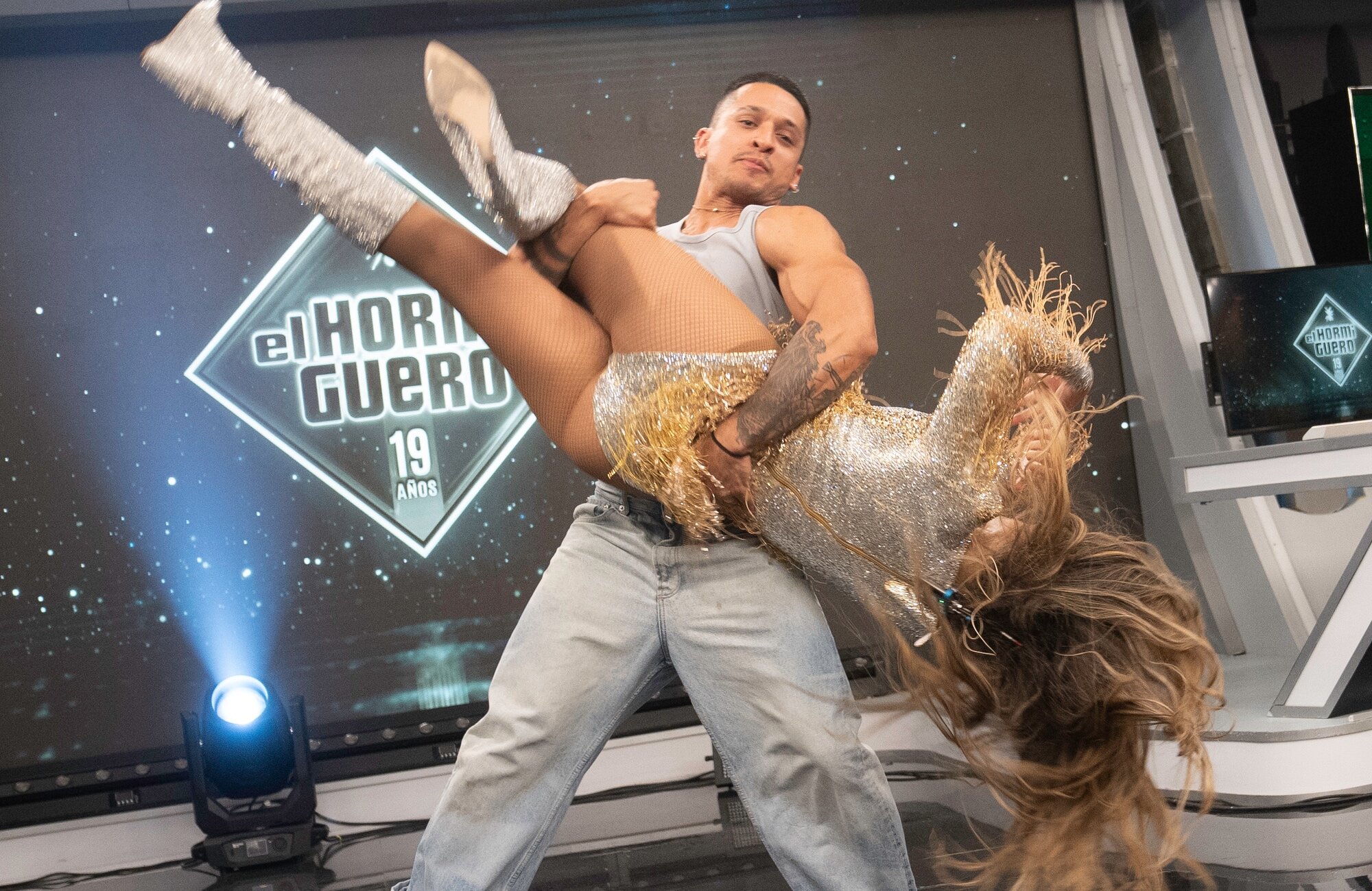 Durante la entrevista, Pablo Motos preguntó a Melody por la peligrosa acrobacia que realiza al terminar la actuación de 'Esa diva'. "Eso tiene una guasa. Empecé entrenando eso en Málaga por mi cuenta, antes de empezar el Benidorm Fest. Quería intentar una pirueta más complicada de la cuenta, pero no me salía", comenzó narrando la cantante. Su relato llamó la atención del presentador, que la retó a realizar la pirueta en el plató, para así mostrarle cómo se hace y poder verla a cámara lenta. Ella aceptó, y ambos comenzaron a preguntar por el bailarín encargado de ejecutarla: "¿Está el bailarín?". Lo hicieron refiriéndose a él únicamente como "el bailarín", sin mencionar ni una sola vez su nombre.