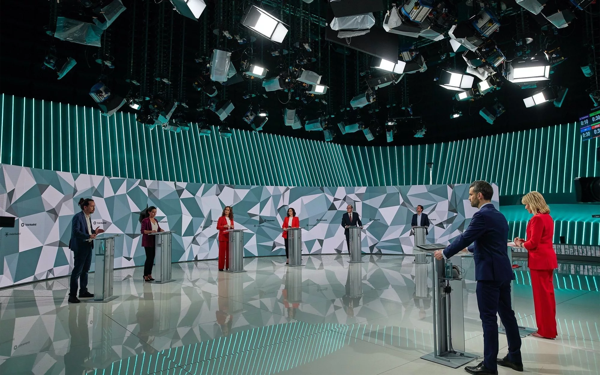 La noche del 21 de abril estaba marcada por dos grandes eventos, televisivamente hablando. Por un lado estaba la entrevista en plató de Rocío Carrasco en Telecinco y, por otro lado, estaba el Debate 4M para las Elecciones de la Comunidad de Madrid, el cual fue emitido por seis cadenas dando comienzo a las 21:30 y finalizando a las 23:42. Dos30' ha realizado este detallado informe sobre los resultados de audiencias de dicho debate en el que se vieron las caras Isabel Díaz Ayuso (PP), Ángel Gabilondo (PSOE), Edmundo Bal (Ciudadanos), Mónica García (Más Madrid), Rocío Monasterio (Vox) y Pablo Iglesias (Unidas Podemos).
