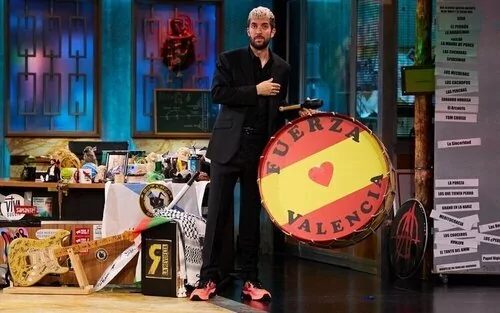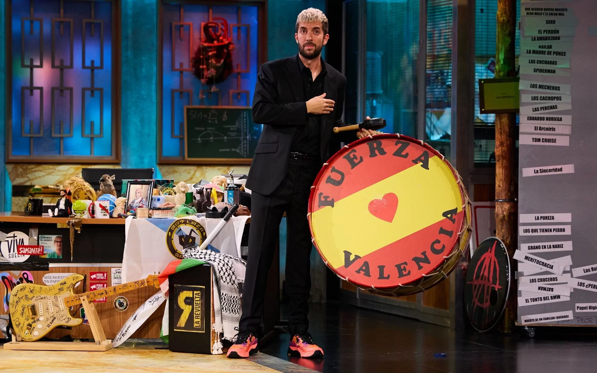 Después de esta felicitación a la competencia y de haber iniciado el programa, una vez más, tocando el bombo que lleva escrito el mensaje de "Fuerza Valencia", David Broncano aprovechaba para lanzar un mensaje de apoyo por el aniversario de la dana junto a la bandera de la Comunidad Valenciana.
