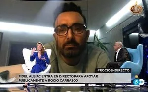 "Creo que hace mucho tiempo hice algo testimonial", comentó Fidel, cuando le preguntaron si era la "primera vez" que intervenía en televisión, algo de lo que ni siquiera él estaba completamente seguro. "Me produce tanto dolor verla y volver a escuchar y repetir tantas veces, volver a justificarse...", reconoció Albiac, para después manifestar su "apoyo público, aunque no sé si hace falta, pero no solo a ella, sino también a toda persona que esté en esas circunstancias". "Ella está ahí, por suerte o por desgracia. ¿Cuántas personas hay que realmente no tienen esa oportunidad?", planteó Fidel, acerca del hecho de que Carrasco sí tenía ocasión de exponer su caso públicamente, al contrario que otras personas en su misma situación. En cuanto se hizo referencia a los rumores negativos que habían circulado sobre él, Rocío intervino para señalar que "al final, es lo que ha sembrado" Antonio David Flores, un "efecto espejo". "Todo lo que me ha hecho a mí, se lo ha plasmado a él. Él está ejerciendo maltrato, para con mis hijos, para la persona que está conmigo, para mi familia... le ha tocado porque está a mi lado y no se ha ido ni muerto", declaró la madrileña.