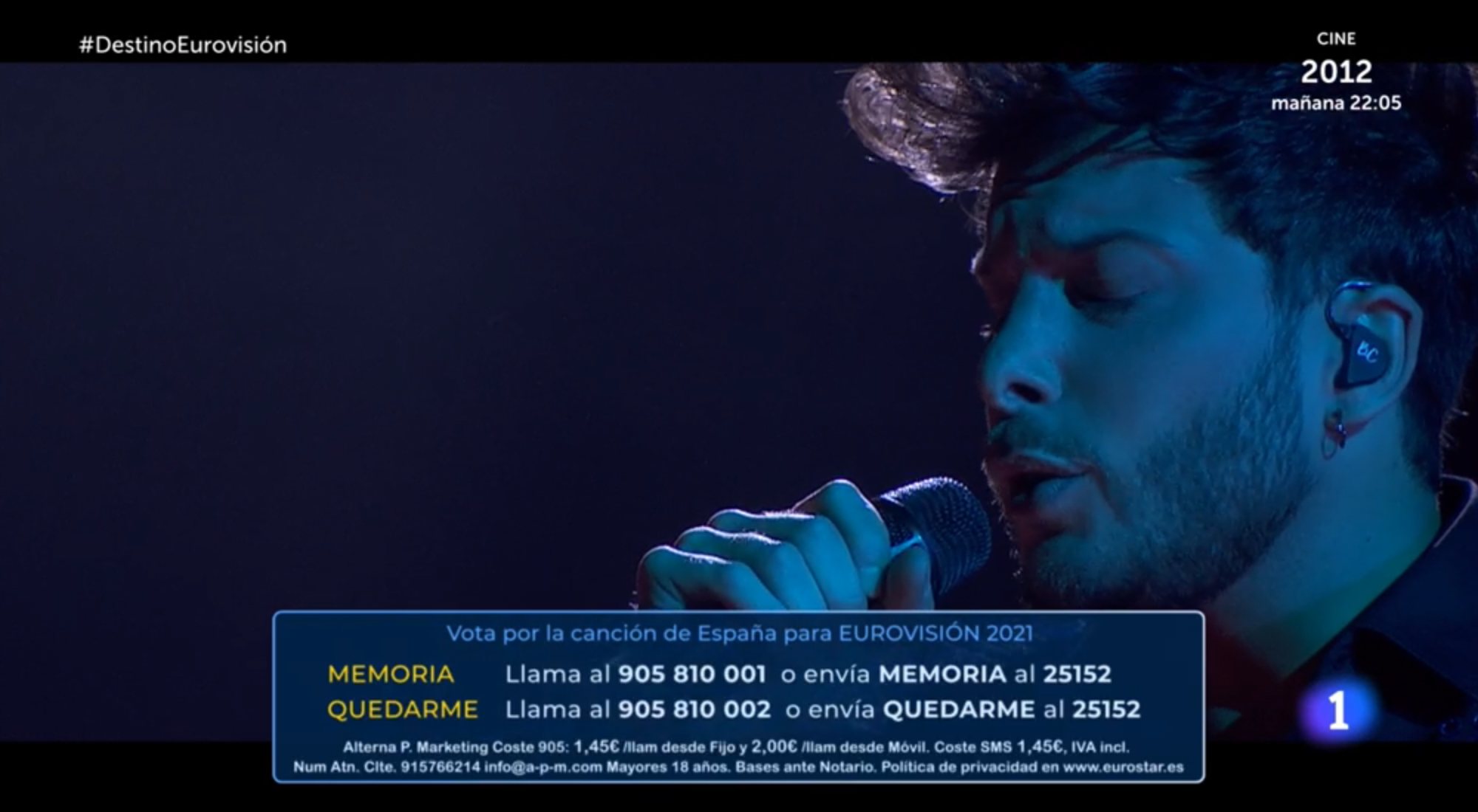 En el caso de las votaciones a través del fijo, Televisión Española dispuso dos números: 905810001 para "Memoria", mientras que el número de "Voy a quedarme" era igual, con un dos en lugar del número uno, al final. No obstante, en alguno de los resúmenes emitidos durante la gala, en los que se recogieron extractos de ambos temas con los medios disponibles para votarlas, 'Destino Eurovisión' mostró el mismo para ambas candidaturas.