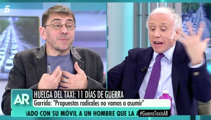 Todo surgió mientras hablaban de la situación de los taxistas y su conflicto con los VTC. "Escucha Inda, tener un trabajo digno que te permita vivir holgadamente, ¿te parece que es ser un caradura?", preguntó Monedero. "Que nadie ha llamado caradura a nadie. No sé qué te has tomado esta mañana o qué te has fumado...", respondió Inda con muy mal gusto.