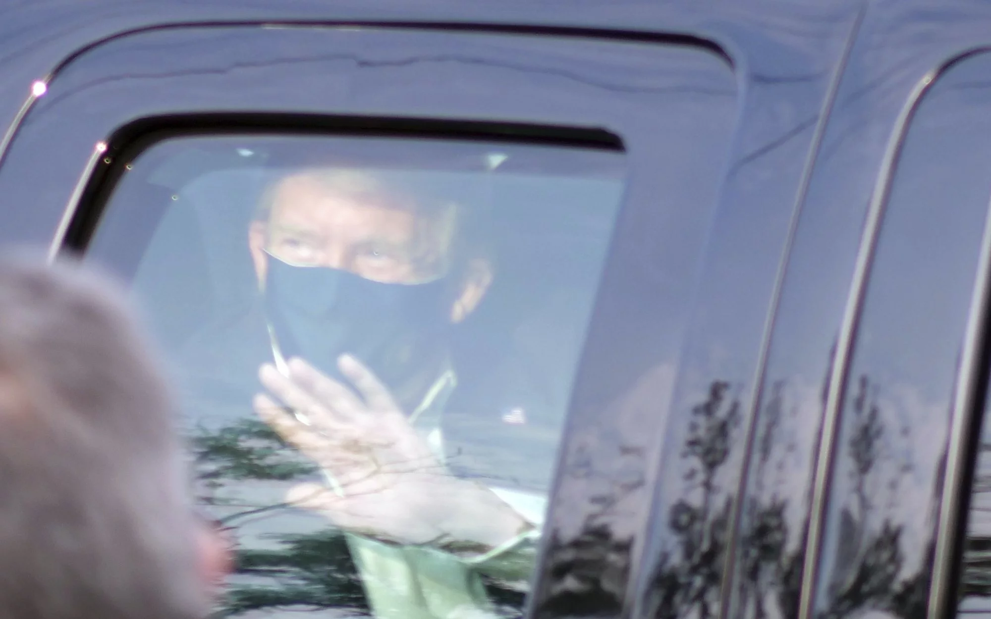 Sin avisar a nadie dentro de las instalaciones y saltándose el aislamiento, Donald Trump abandonó su habitación para subirse a un coche blindado, con mascarilla y ventanas cerradas, con el que dar una vuelta por los alrededores del hospital y saludar a todos aquellos que estaban cerca del complejo.