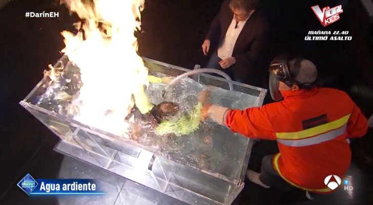 La instintiva reacción del presentador fue apartar las llamas con las manos, antes de que el resto del equipo comenzara a usar los extintores en apenas unos segundos, apagando las llamas definitivamente. "¿Todo bien?", quiso saber Motos, preocupado por el estado del especialista, que aseguró encontrarse bien a pesar del impacto del momento, provocado por el hecho de que el calor habría afectado al tubo que usaba para respirar y le habría impedido coger aire a través de él. En cuanto a la acción del presentador, le llevó quemarse ligeramente, dado el olor que observaron los invitados. "Podré sobrevivir", aseguró Motos, algo nervioso. "Hoy de momento no vamos a hacer este experimento", añadió el valenciano, momento en el que Chino alabó el hecho de que se hubiera acercado a ayudar sin pensarlo. "La emoción no ha hecho más que empezar", bromeó Pablo, algo más tranquilo.