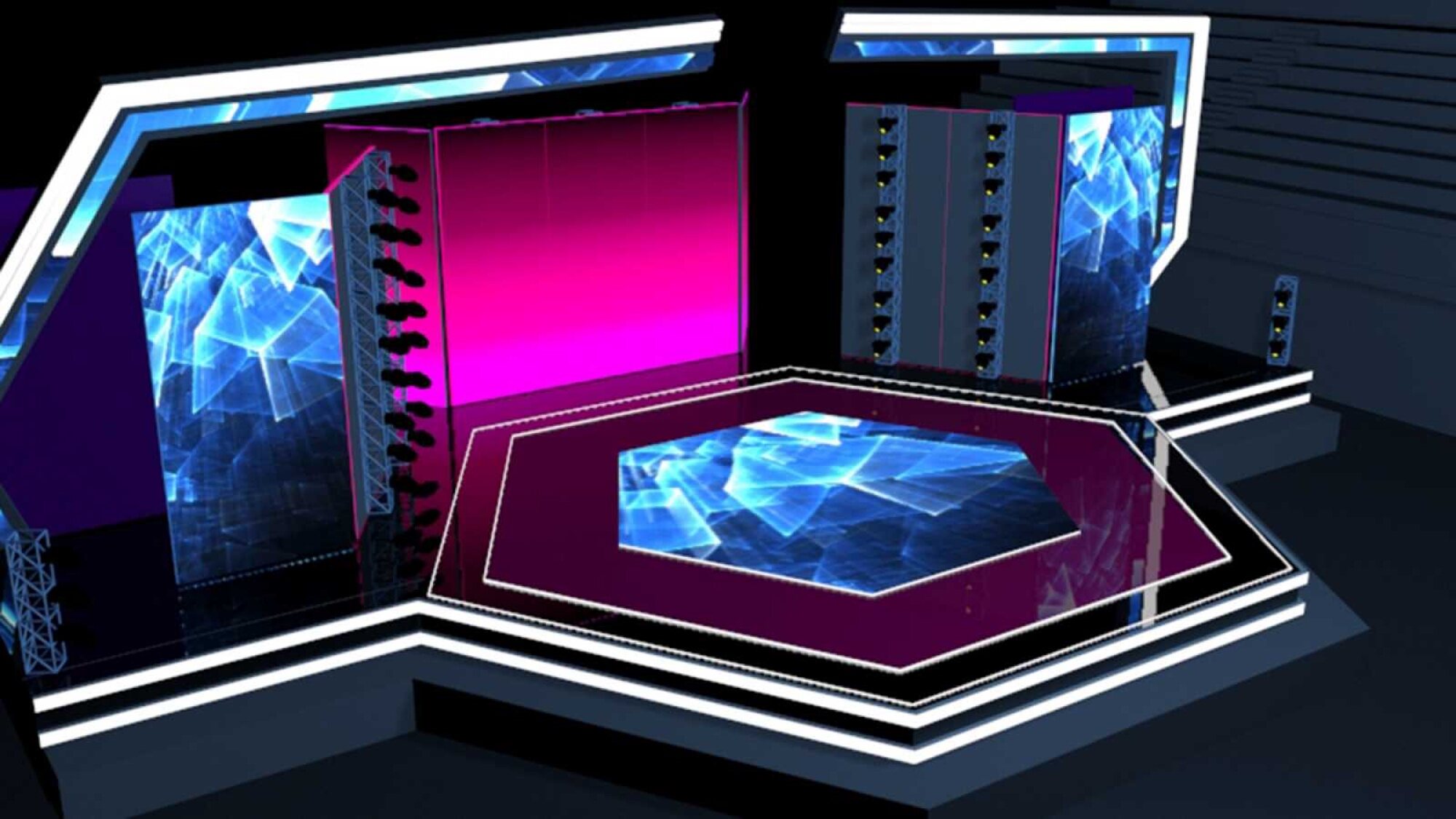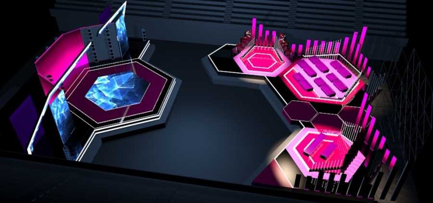 El Palau D'Esport L'illa acogerá esos días una estructura formada por un escenario principal con forma hexagonal, la cual recrea el logo de la preselección española, con una superficie de 450 metros cuadrados y 14,22 metros de diámetro. Junto a dicha estructura, en tres de sus lados, se colocarán paneles giratorios, concretamente, módulos ambivalentes. Por un lado, estos serán pantallas LED de alta resolución, de más de 20 metros cuidados, mientras que, por el otro, serán columnas de luz. Asimismo, la superficie del escenario está formada por una pantalla LED con su misma forma y 9,24 metros de diámetro.