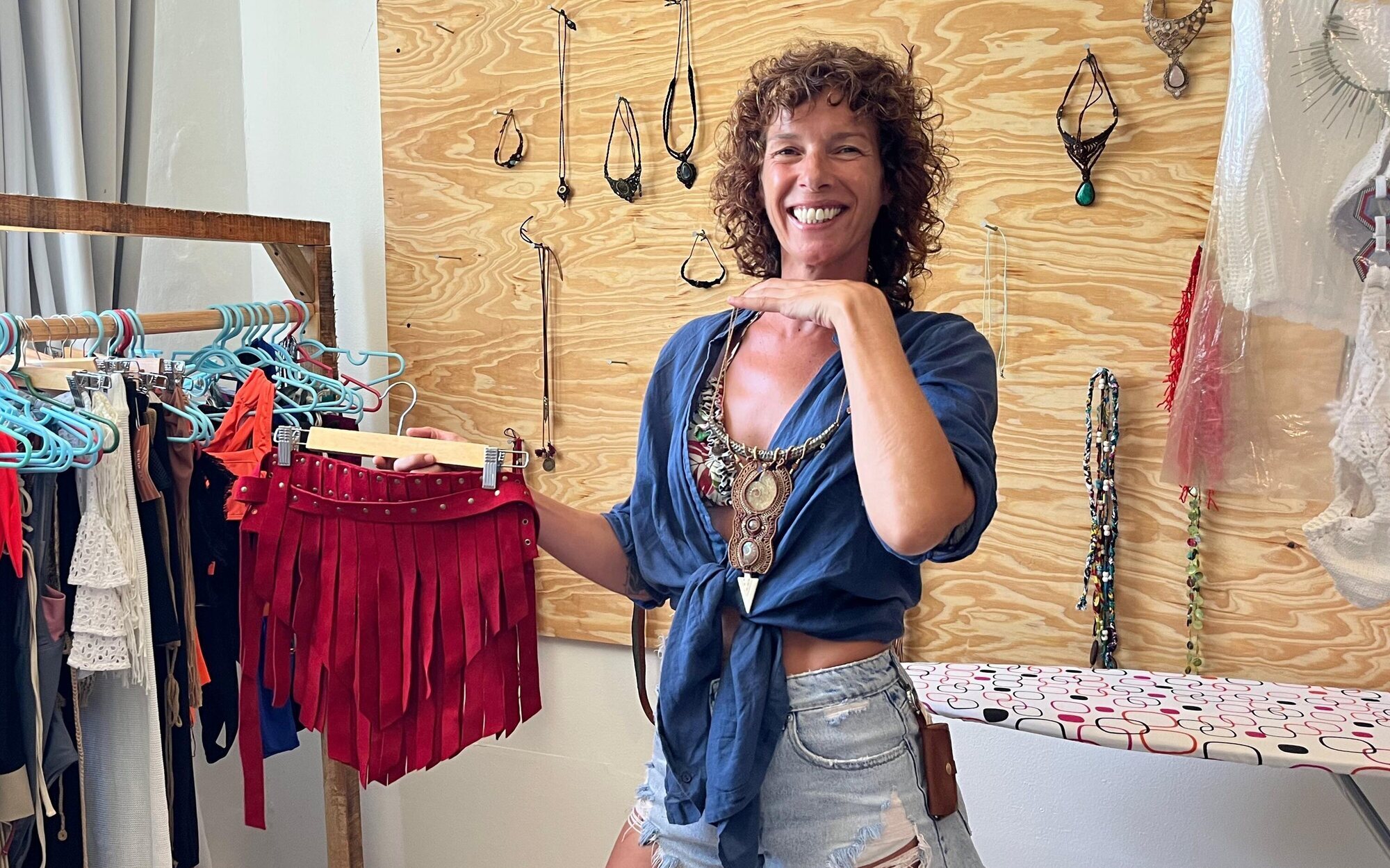 "Aquí aprovechamos todo, de una misma falda me reinvento y de esa misma falda saco otra", afirma Garcillán que cuenta entre risas que las conchas de una de las faldas son de una paella que se comió. De hecho, algunas de las prendas y materiales los guarda para poder utilizarlos en años posteriores, pero siempre dándoles un giro. Además, la estilista también se encarga de supervisar el peinado y el maquillaje de Madrueño para que todo encaje.