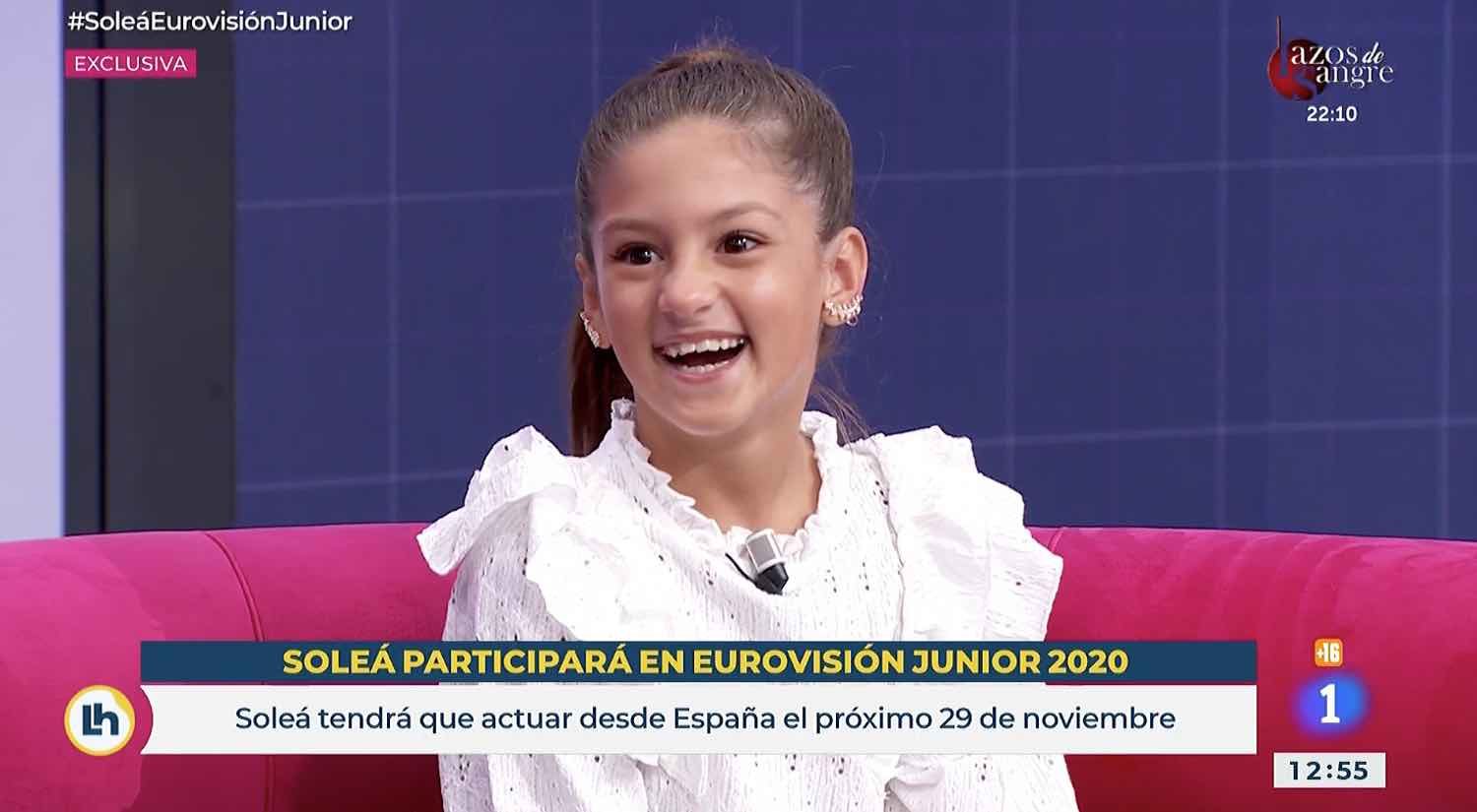 En 'La hora de La 1', la joven artista ha confesado que "me hace muchísima ilusión" poder representar a España y ha explicado cómo se enteró de la noticia. "Hace unos días pensaba que iba a ir a una sesión de fotos y allí me lo dijeron (...) ¡mi cabeza explotó!", ha añadido. La pequeña de 9 años cogerá el revelo de Melani García, representante de España en el Festival de Eurovisión Junior 2019, quien no ha dudado en mandarle un cariño mensaje, y seguirá la estela de María Isabel (2004), Antonio José (2005) y Dani Fernández (2006).