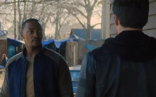 Ese impacto no va acorde con la duración de la secuencia, emplazada hacia la mitad del capítulo y ambientada en Baltimore, que se esfuma relativamente rápido. Empujado por Bucky, Sam acude a ciegas a hacer una visita, y antes de llegar a su destino, tienen una breve conversación con un niño que se refiere a él como "Black Falcon", algo que resulta ridículo para Wilson, ya que el añadido del color no hace más que quitar entidad propia a su alter ego. Parece que si es el Falcon negro, tiene que haber otro blanco del que sea complemento. Quizá esto suene irrelevante, pero gana mucho peso en yuxtaposición al momento posterior.