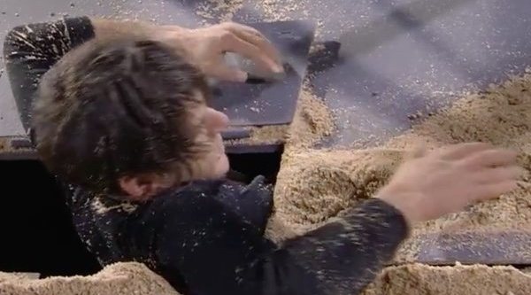 "Él pidió un método de inmovilización y que fuera lo más salvaje posible", explicaba Risto Mejide. Un reto que nunca nadie había hecho en el mundo y que tenía que superar en un máximo de 6 minutos, de conseguirlo se convertirían en el único hombre en el mundo en lograrlo. El concursante no lo dudó y se adentró en la caja cerrada con un candado que le amarraba las manos y a su vez estaba dentro de otra caja sobre la que echaron las toneladas de tierra. "La maniobra no va a ser fácil", reconocía Alfred. "Ocúpate de salir vivo", decía Risto.