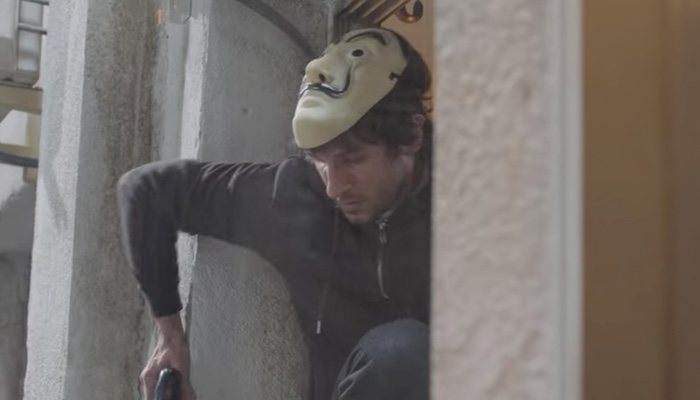 Así, suspendido en el aire, Javier (Gutiérrez), que sí que mantiene el poder de flotar gracias a unas pastillas, se introduce por la ventana del del piso del vecino camuflado con una máscara de Dalí, haciendo un guiño a 'La Casa de Papel', también de Netflix. Una vez dentro sería pan comido hacerse con el medallón, solo que el ruido de los cristales alerta al dueño del piso que corre al salón a ver qué ha ocurrido y alucina al ver lo que está pasando. Corriendo del susto, acaba inconsciente en el suelo y cuando se despierta, el hombre enmascarado ya no está.