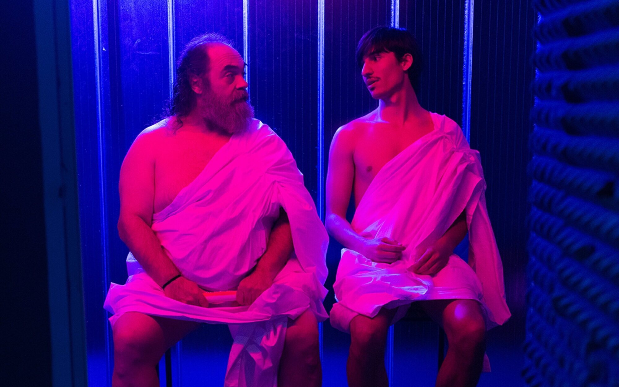 Pero, en paralelo a esta trama, el film se atreve a reescribir (o no) la historia de los filósofos griegos contando cómo se conocieron y si realmente eran amantes. Es ahí, en un cuarto oscuro, donde aparece un seductor y atractivo Platón (Romero) que cautiva a Sócrates, encarnado por el polifacético Alfredo Alba (ayudante de dirección de 'La Moderna'), que lamentablemente falleció hace unos meses.