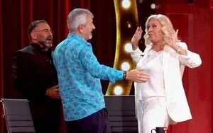 "No vaya a ser...", añadía Rey, manteniendo las distancias con un Sobera que se quedó inmóvil, con los brazos abiertos. "¡Bárbara, no seas antigua, hija!", soltó Vázquez, mientras su compañero y la vedette por fin se abrazaban ante él. "A ver, abrázame. Tócame un poquito, anda, que yo te dejo. Que se te enteren de que te he dejado, no vaya a ser que tengamos problemas", insistía la invitada, mientras abrazaba a un Sobera que, con humor en medio de los serios comentarios de Rey, confesó "qué miedo me da Bárbara".