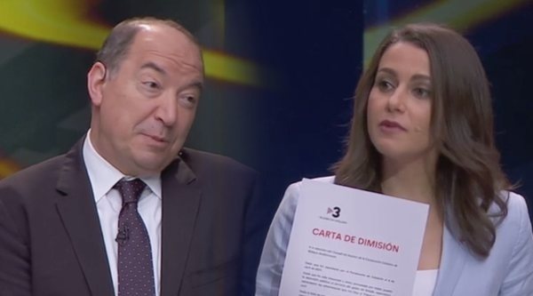 "Por dignidad le he vuelto a traer la carta de dimisión (...) dimita usted si se siente tan mal pagado (...) y no nos haga esperar a gobernar", le afirmó Arrimadas mientras este no dudaba en sonreír, avisándole que no podía responder "porque no me presento a las elecciones". Esta no dudaba entonces en seguir su ataque contra su figura y explicaba a los espectadores que Sanchis había afirmado públicamente que no está siendo bien pagado. "Usted gana 110.000 euros (...) y el otro día leí que había dicho que le parecía muy poco, que estaba mal pagado y que quería dejar este medio", decía en alto, mientras el director de TV3 se mostraba impasible por dichas afirmaciones.