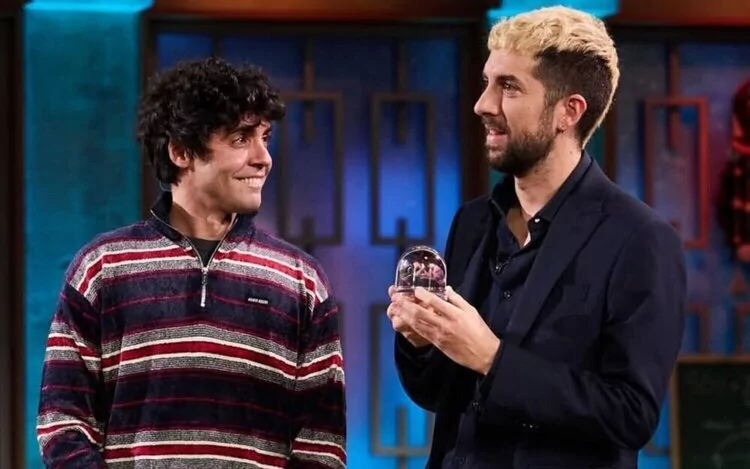 Y es que Ambrossi entró acompañado de una figura de Paquita Salas y con un regalo muy especial para David Broncano, una bola de cristal con una imagen de la primera entrevista que Los Javis concedieron juntos al presentador. "Me entran ganas de llorar", confesó Ambrossi, visiblemente emocionado al recordar ese momento y aprovechando para enviar un mensaje de cariño a su expareja: "Yo puedo estar aquí y presentar el Benidorm Fest porque Javi está montando la película".