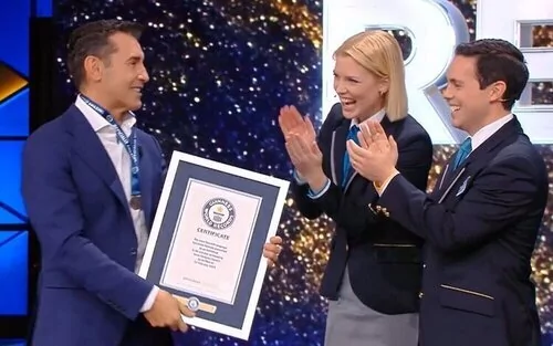 "Guinness World Records ha verificado que eres el presentador que más formatos televisivos ha presentado en lengua española con un total de 46, por lo tanto, ¡felicidades!", declaraba el Janela, mientras entregaba a Jesús Vázquez la placa oficial que lo acredita con el récord mundial. "Eres oficialmente increíble", decían los jueces al unísono en inglés. El gallego, visiblemente emocionado, apenas podía articular palabra: "No me lo esperaba, no puedo hablar... No me lo puedo creer".