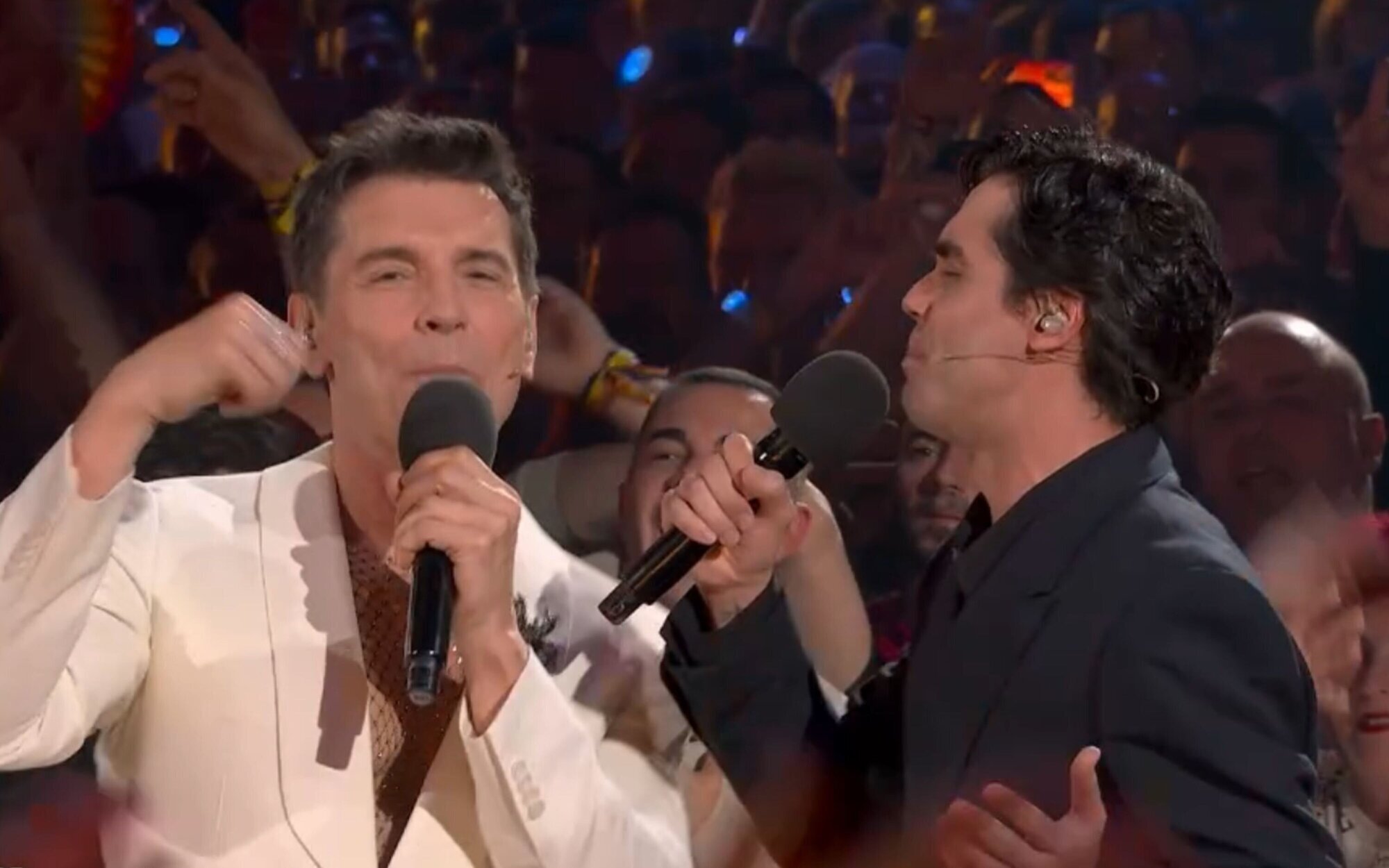 Jesús Vázquez cantando junto a Javier Ambrossi en la Final del Benidorm Fest 2026